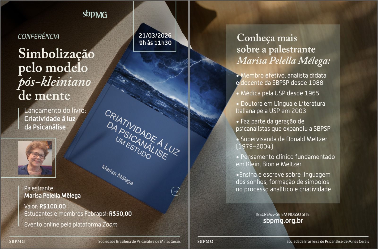 Na ocasião, teremos ainda o lançamento do livro “Criatividade à luz da Psicanálise”, ampliando o diálogo entre teoria, clínica e os processos criativos que sustentam o trabalho analítico.