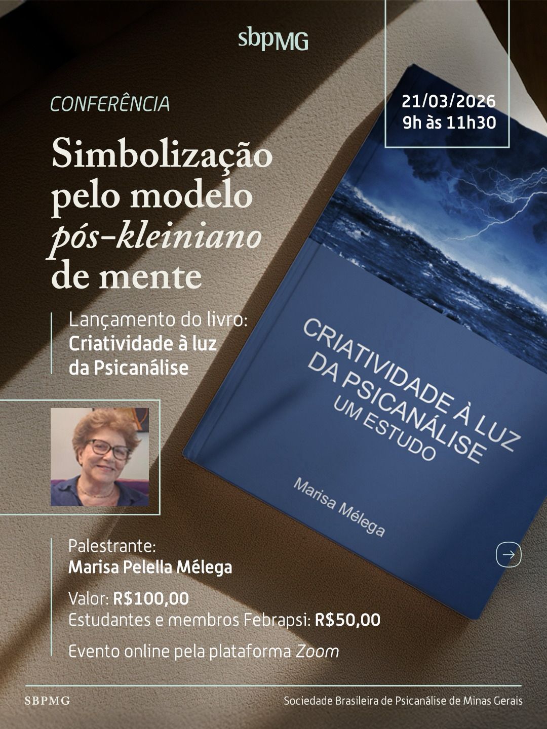 Convidamos você para uma manhã de reflexão com Marisa Pelella Mélega, que abordará o tema “Simbolização pelo modelo pós-kleiniano de mente”.
