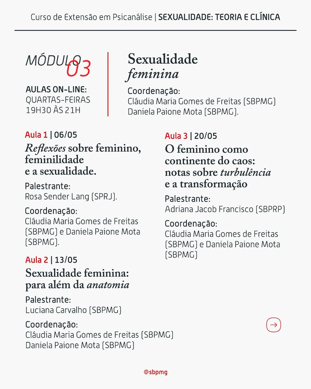 Curso de Extensão 2026 — Sexualidade: Teoria e Clínica.