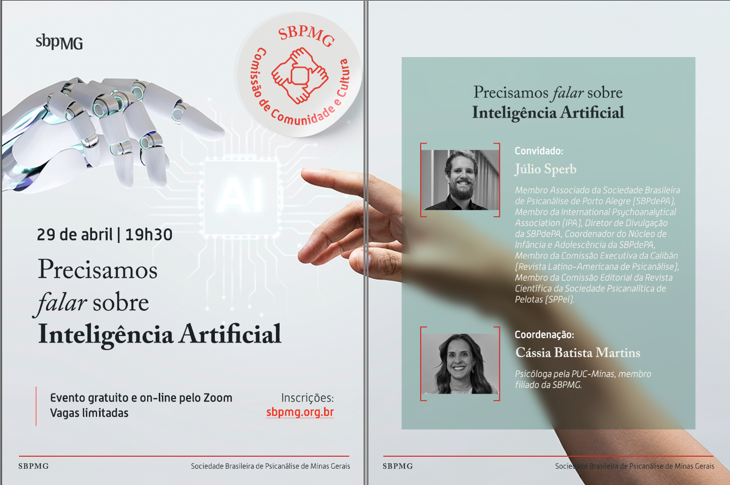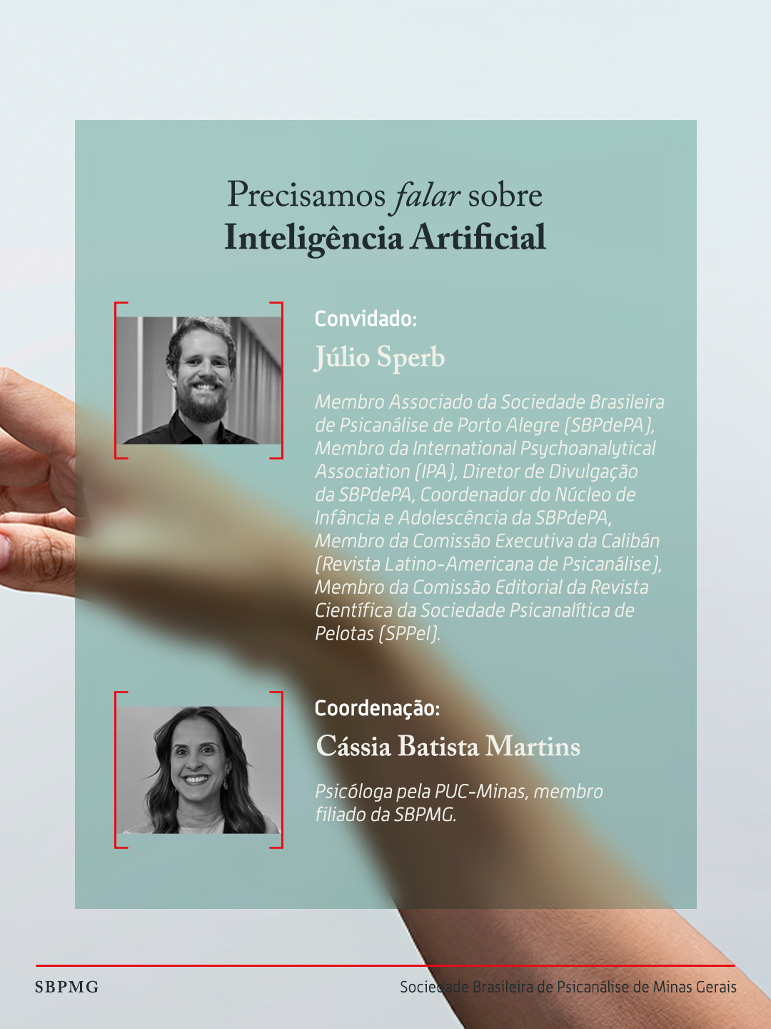 🗣 Está chegando mais uma edição do projeto “Precisamos falar sobre…”! Desta vez, a pauta será Inteligência Artificial, com o psicanalista Júlio Sperb!